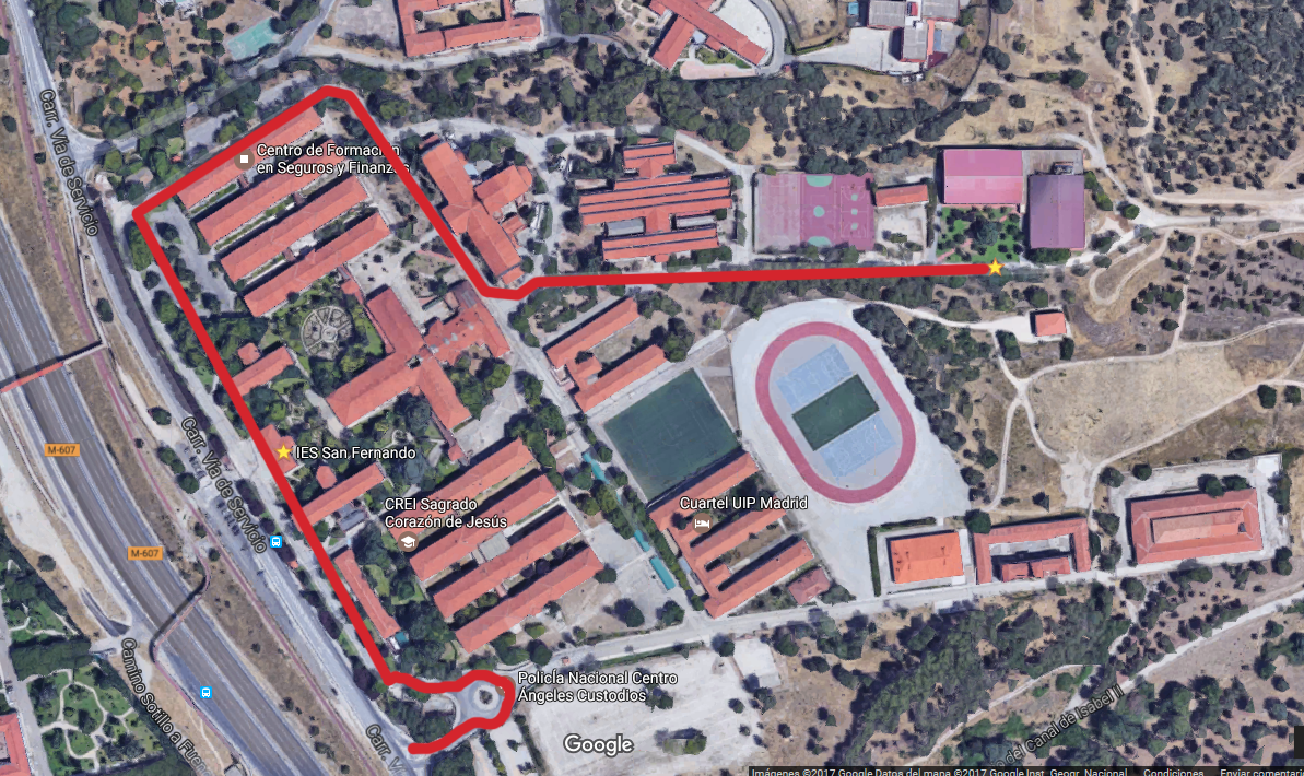 Una vez dentro del complejo del colegio hay que seguir la ruta marcada con la linea roja en la siguiente imagen:
